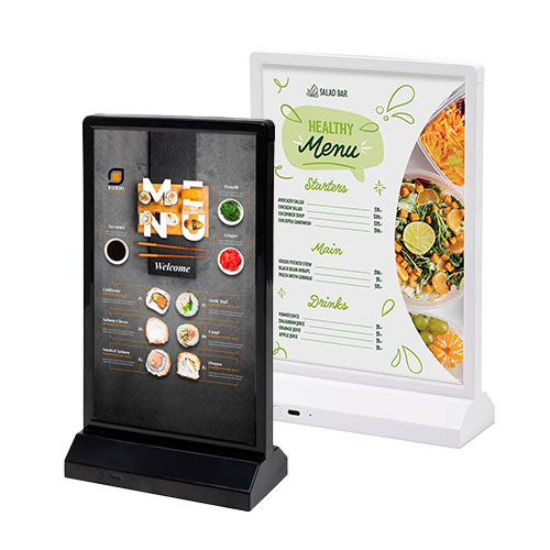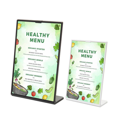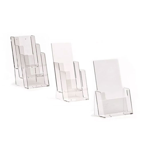 Trajno in enostavno namizno stojalo izdelano iz polistirena, primerno za uporabo na prodajalnem pultu.
