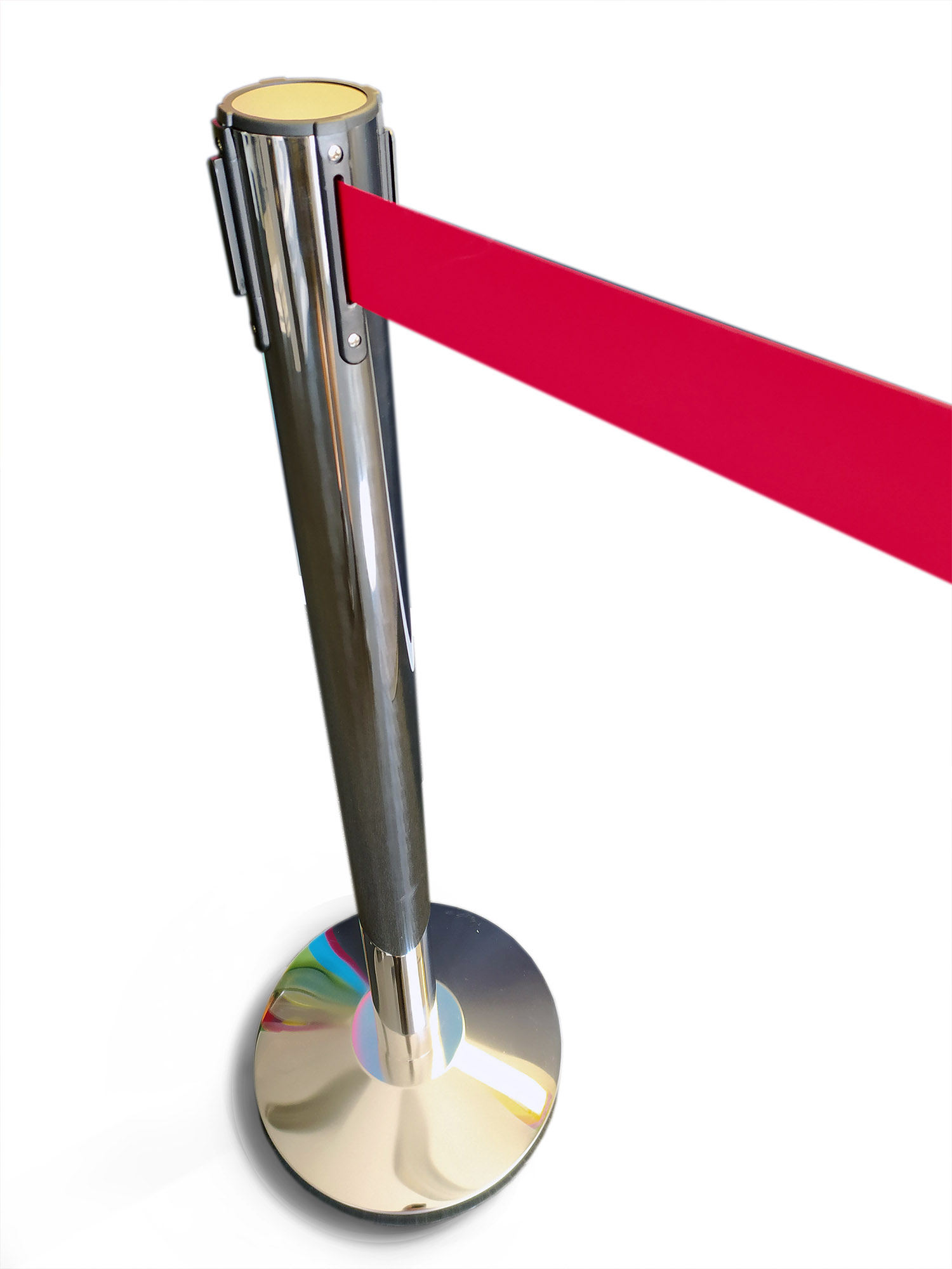 Steuern Sie Verlauf und Richtung von Kundenwarteschlangen mit dem Gurtpfosten Economy! Elegantes, leichtes Personenleitsystem mit 2,5 m selbstspannendem Gurtband. Mit Aufnahmeclips an 3 Seiten können Sie mehrere Gurte gleichzeitig verwenden. Erhältlich mit schwarzen oder chromfarbenen Pfosten. Perfekt für die Steuerung des Verlaufs von Warteschlangen und ideal für den Einsatz im Einzelhandel, in der Freizeit- oder Transportindustrie. Ein idealer freistehender Pfosten für die Steuerung von Warteschlangen!