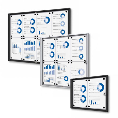 Ta vitrina združuje vzdržljivost in funkcionalnost. Zunanja globina je 4,7 cm, notranja globina 2,6 cm. Ima stabilen profil širine 2,6 cm. Vrata iz varnostnega stekla ESG debeline 4 mm zagotavljajo jasen pogled in povečujejo varnost. Velikosti do 12 x A4 so opremljene z eno ključavnico, večje izvedbe od 15 x A4 pa z dvema ključavnicama. IP56 certifikat za zunanjo uporabo