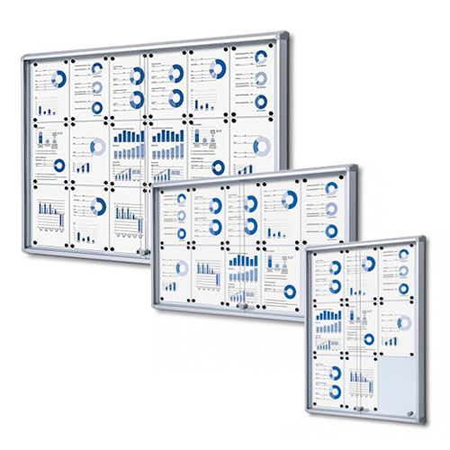 Varno predstavite svoja sporočila v vitrini, ki ima kovinsko hrbtno ploščo, na katero sporočila pritrdite z magneti ali zapišete z markerji.
